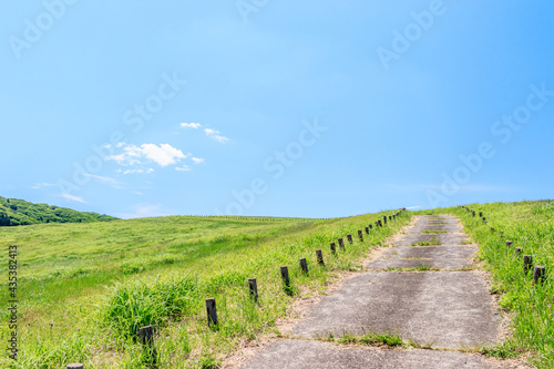 Obraz premium 万年山へと続く登山道(牧場) 大分県 Mountain trail leading to Mt. Haneyama Ooita-ken