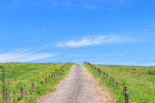 Obraz premium 万年山へと続く登山道(牧場) 大分県 Mountain trail leading to Mt. Haneyama Ooita-ken