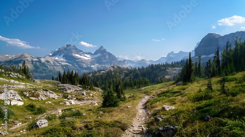 Obraz premium Mountain Trail With A View Of Snow-Capped Peaks