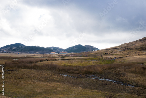 Fototapeta premium mountain valley and blue sky with clouds, huehuetenango, Guatemala
