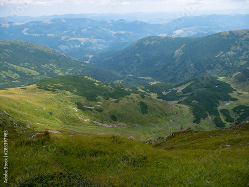 © HAOS, Fototapeta premium Mountain valley during sunrise / sunset. Natural summer landscape. Colorful summer landscape in the Carpathian mountains.