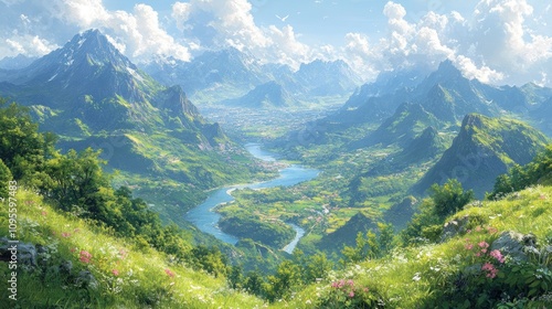 © Muamanah, Obraz premium Mountain Valley Landscape