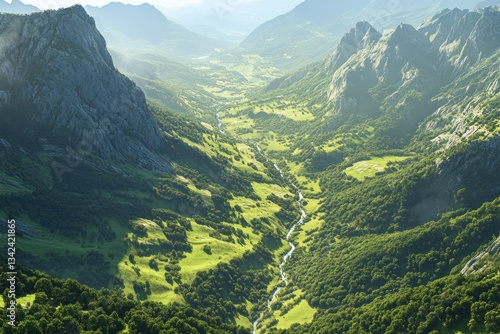 © George, Fototapeta premium Mountain Valley River Landscape Aerial View