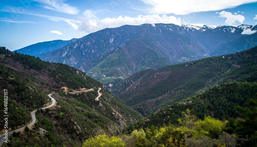 © Barokah, Fototapeta premium Mountain valley road winds through lush greenery