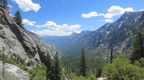 © Isnaini, Fototapeta premium Mountain valley vista, sunny day