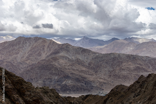 Fototapeta premium Mountain Valley with Blue sky in Summer Leh, Ladakh, Jammu and Kashmir, India