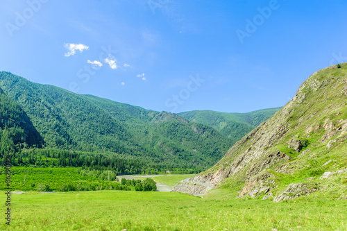 © Iosif Yurlov, Fototapeta premium Mountain valley with river in Altai in summer