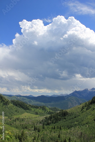 © jakerbreaker, Naklejka premium Mountain valley with storm moving in