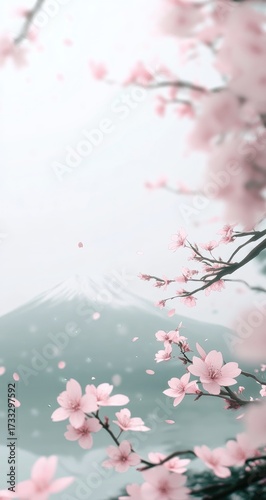 Fototapeta premium Mountain view framed by cherry blossoms