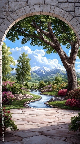 © Mus, Naklejka premium Mountain View from Stone Arch.