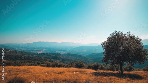 © Gerbang, Obraz premium Mountain View with a Single Tree