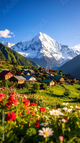 © Gaji, Fototapeta premium Mountain village bathed in sunlight
