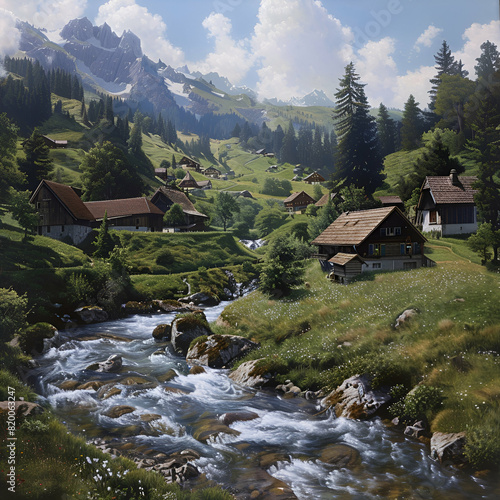 © zaigham, Fototapeta premium mountain village in the mountains