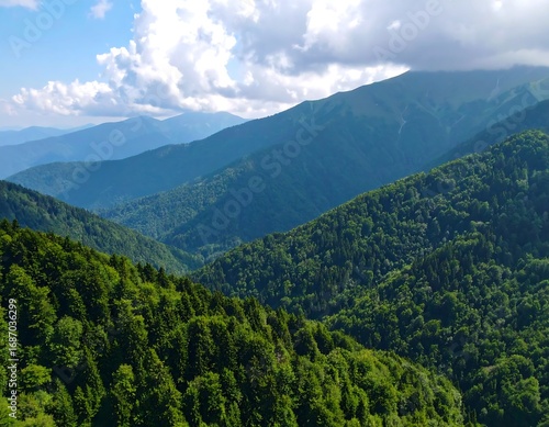 © Muhammad, Fototapeta premium Mountain vista with lush green forests