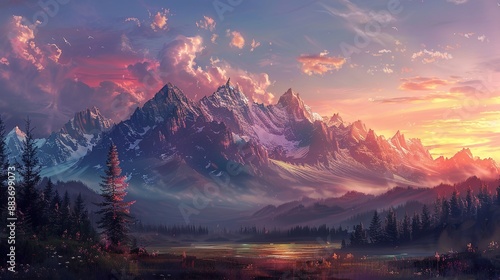 © pixelwallpaper, Obraz premium Mountain wallpaper