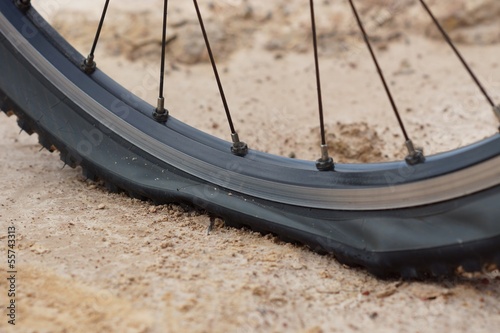 © weerapat1003, Naklejka premium mountainbike flat tire on dirtland