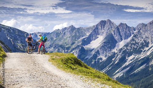 © mmphoto, Fototapeta premium Mountainbiker auf der Tour in den Alpen