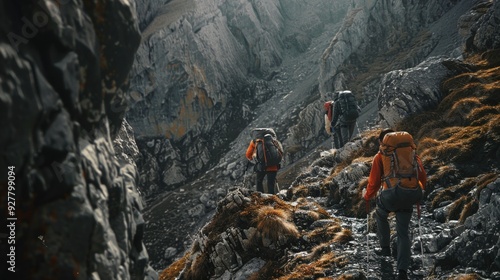 © sanntoru, Obraz premium Mountaineers hiking