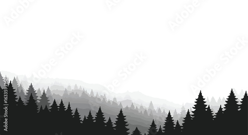 Obraz premium Mountainous grayscale silhouette forest illustration, hazy