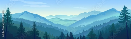© Horsi, Fototapeta premium Mountainous Landscape in Blue Hues