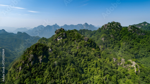 © rtre, Obraz premium Mountainous landscape with dense greenery