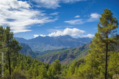 © KumCup, Fototapeta premium Mountainous Landscape with Pine Trees