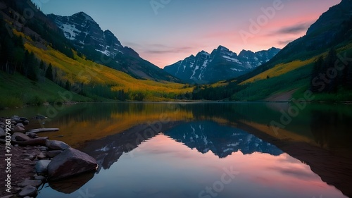 © Ali Khan, Fototapeta premium Mountainous Landscapes Reflected in Nature's Mirror Under the Sky.