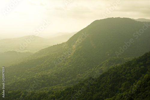 Naklejka premium Mountainous terrain and cloudy sky