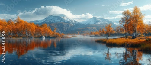 © muhamad, Fototapeta premium Mountains and lake in autumn