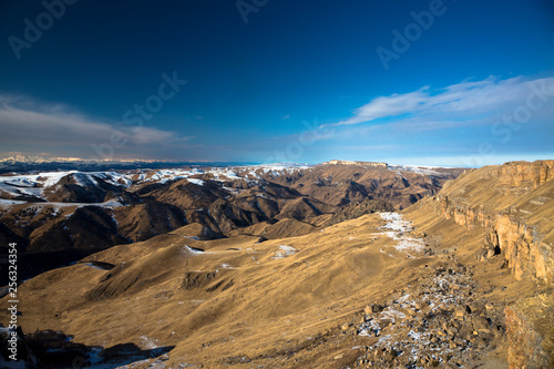 Fototapeta premium Mountains and the nature of the North Caucasus, the blue sky over high rocks...