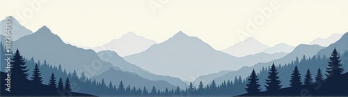 © kramynina, Naklejka premium Mountains and trees are silhouetted against a pale blue sky