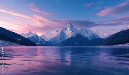 © iLegal Tech, Obraz premium mountains are in the distance with a lake in the foreground
