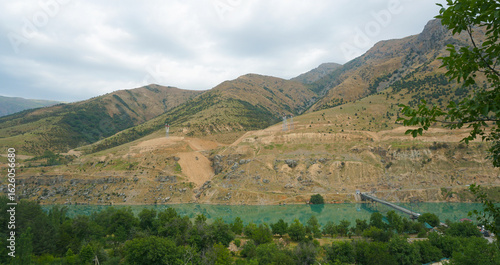 © PX, Naklejka premium Mountains are visible on the river bank.