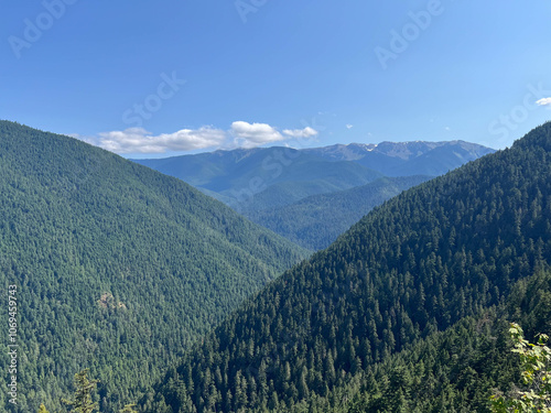 Fototapeta premium Mountains at Olympic National Park in Washington on a sunny day with clear skies.