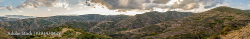 © JuanFrancisco, Naklejka premium mountains at sunset, view of storm clouds and abandoned village