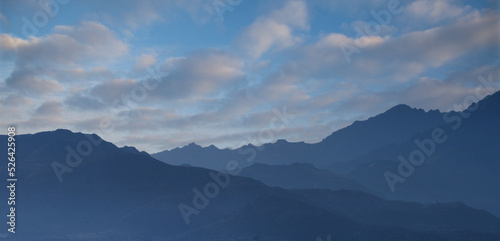 © jeancliclac, Fototapeta premium Mountains behind the village of Lumio Corsica on the mediterranean sea