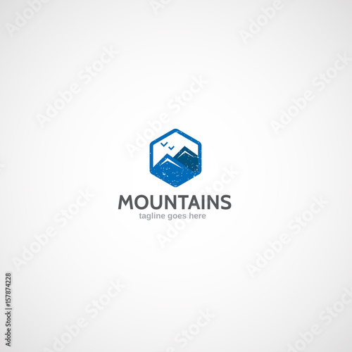 © unien, Fototapeta premium Mountains flat logo.