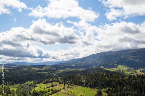 Naklejka premium mountains forest village beautiful landscape