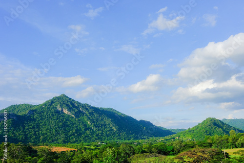 Naklejka premium mountains green grass and blue sky landscape in Thailand.- (Selective focus)