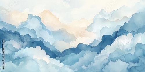 Fototapeta premium Mountains in watercolor: Abstract watercolor painting of layered mountains, depicting a dreamy landscape with soft hues and a tranquil ambiance. Capturing the essence of nature's serenity.