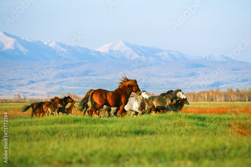 © Vladimir Smirnov, Obraz premium Mountains landscape with herd of horses. Buryatiya