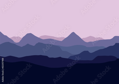 © Fajarhidayah11, Naklejka premium Mountains nature landscape. Vector illustration in flat style.