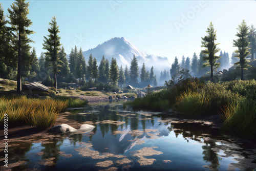 Naklejka premium Mountains Nature Paradise Embarking on an Epic Summer Adventure of Hiking, Camping, Wildlife Spotting, and Serene Alpine Landscapes The Swiss Alps, Rocky Mountain, Dolomites, Himalayas, Generative AI
