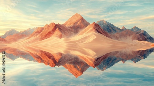 Naklejka premium Mountains reflected lake sky background arena entertainment dune abstract...