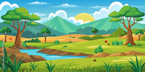 © Artisticeyes, Fototapeta premium Mountains Scene Vector Illustration for kids