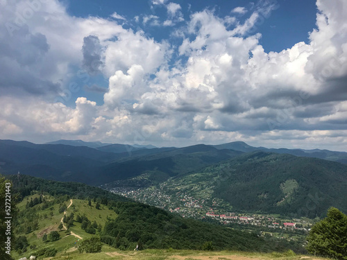 © Совгіра Марина, Naklejka premium Mountains spring landscape with clouds over the mountains