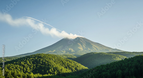 © AURA, Fototapeta premium mountains with green trees and bright clouds