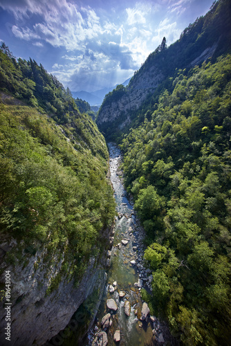 © the_lightwriter, Obraz premium mountains with river deep below