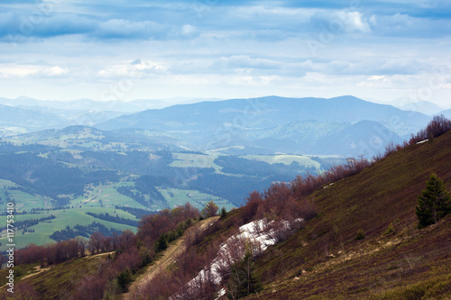 © Angelika Smile, Fototapeta premium mountains with trees and melting snow