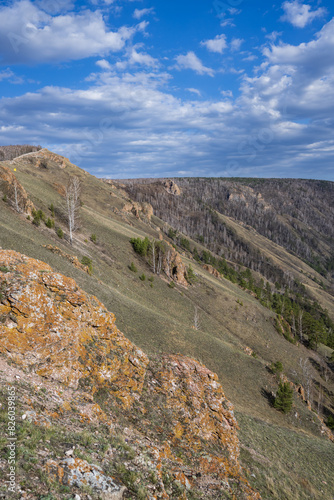 © Алексей Линник, Obraz premium mountainside landscape with blue sky